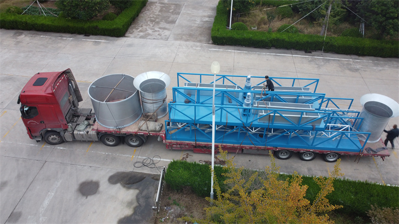 第二次下沉是為了去除氧化后從水中脫落的微生物膜。垂直流動斜管沉淀池的設(shè)計(jì)表面負(fù)荷為:2m/m2h,上升流速0.54m/s,沉淀池上部為集水區(qū),中部為沉淀區(qū),下部為滑泥斗。第二個沉淀池的停留時間為2小時。在第二個沉淀池的集水區(qū)設(shè)置潛孔出水堰,防止出水帶從表面絮凝。污泥斗傾角為45度,用空氣電梯排出沉淀污泥。