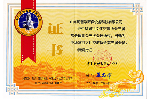 會上,中華媽祖文化交流協(xié)會常務(wù)副會長俞建忠代表理事會作工作報告。大會還審議并通過《章程》修改的決定,討論決定了增選的會員單位名單,熱烈祝賀山東海普歐環(huán)保設(shè)備科技有限公司當(dāng)選為中華媽祖文化交流協(xié)會會員單位。