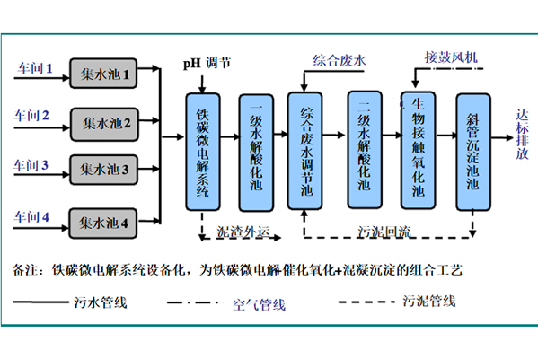 案例:我公司在山西運(yùn)城做過的一個(gè)農(nóng)藥廢水處理的項(xiàng)目,該農(nóng)藥化工企業(yè)主要從事農(nóng)藥制劑的生產(chǎn),產(chǎn)品主要有除草劑和殺菌劑兩大類。該類廢水污染物濃度較高,我公司根據(jù)現(xiàn)場(chǎng)勘探和水樣的實(shí)驗(yàn),擬定了分類收集后采用“鐵碳微電解+催化氧化+混凝沉淀”的工藝。