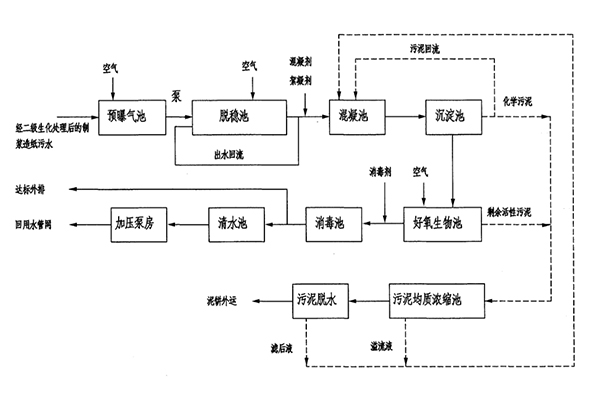 案例:我公司在廣西省柳州市做過一個(gè)造紙廢水處理的項(xiàng)目,該造紙公司主要采用堿法造紙,堿法造紙排出的廢水主要有三種:一是蒸煮木漿(或草漿)所產(chǎn)生的廢液,又稱黑液;二是打漿機(jī)和精漿機(jī)排出的污水,稱打漿廢水;三是造紙機(jī)漿水,其中可以直接使用的成為白水;我公司根據(jù)現(xiàn)場(chǎng)勘探和水樣的實(shí)驗(yàn),擬定了“混凝沉淀+好氧生物+消毒”的處理工藝。