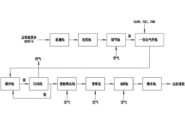 案例:食品廢水處理是在環(huán)保廢水處理中比較常見的一種廢水處理,小編就用我公司在安徽省六安市做過的一個(gè)豆制品加工廢水處理的項(xiàng)目來簡(jiǎn)單介紹一下吧。該企業(yè)是一家集食品研發(fā)、生產(chǎn)、銷售于一體的大型農(nóng)業(yè)產(chǎn)品深加工基地,主要產(chǎn)品包括豆奶粉、燕麥片等。生產(chǎn)廢水主要來源于豆奶粉生產(chǎn)過程中的泡豆?fàn)C豆廢水、糖漿車間產(chǎn)生的清洗廢水等,其特性是有機(jī)物(蛋白質(zhì)、淀粉、糖)含量高,易腐敗,但不含有害物質(zhì),易降解等,廢水呈弱酸性。我公司根據(jù)現(xiàn)場(chǎng)勘探和水樣的實(shí)驗(yàn),擬定了“UASB+接觸氧化+混凝沉淀”的處理工藝。
