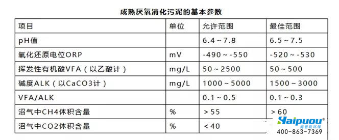 培養(yǎng)后,成熟污泥呈深灰色至黑色,有焦油味但無(wú)硫化氫味,pH值在7.0-7.5之間,污泥易脫水干燥。對(duì)進(jìn)水處理效果好,產(chǎn)氣量大,沼氣中甲烷含量高。培養(yǎng)成熟厭氧消化污泥的基本指標(biāo)和參數(shù)見下表。