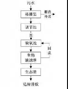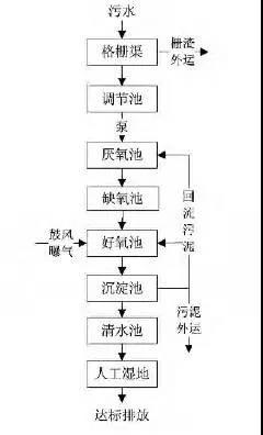 一種常規(guī)生化處理后增加生態(tài)池工藝。生態(tài)池,也稱為氧化塘或穩(wěn)定塘,是利用自然凈化能力處理污水的構(gòu)筑物的總稱。凈化過(guò)程類似于自然水體的自凈過(guò)程,通常涉及對(duì)土地進(jìn)行適當(dāng)?shù)娜斯ば拚⒊靥,設(shè)置堤防和防滲層,利用池塘中生長(zhǎng)的微生物處理污水。