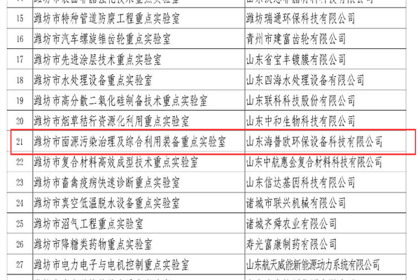 恭賀海普歐環(huán)保入選濰坊市重點實驗室批準建設名單公示: